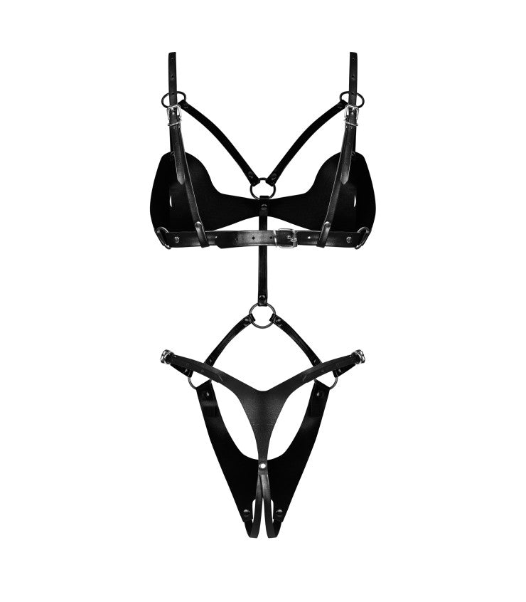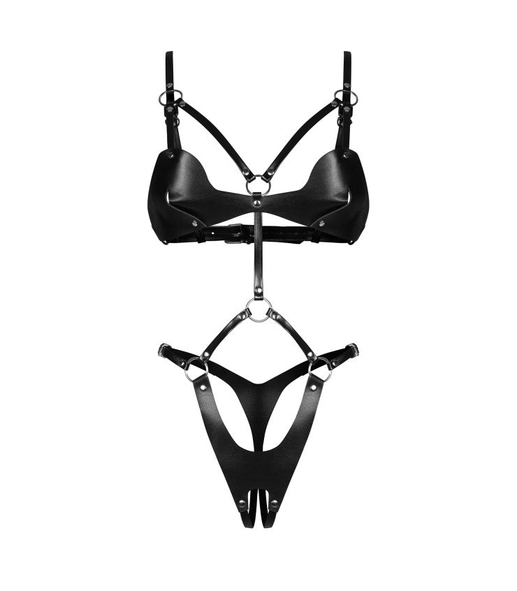 Entfesseln Sie Ihre innere Verführerin mit dem Dame Controle offenen Body, bei dem Sinnlichkeit auf raffinierte Eleganz trifft. Gefertigt aus glattem, hochwertigem Kunstleder überzeugt dieses ausdrucksstarke Design mit markanten silberfarbenen Verbindern und Nieten, die dem Look eine provokant-edle Note verleihen. Mehrere verstellbare Riemen sorgen für eine individuelle Passform und modellieren Ihre Kurven mit präziser Raffinesse.