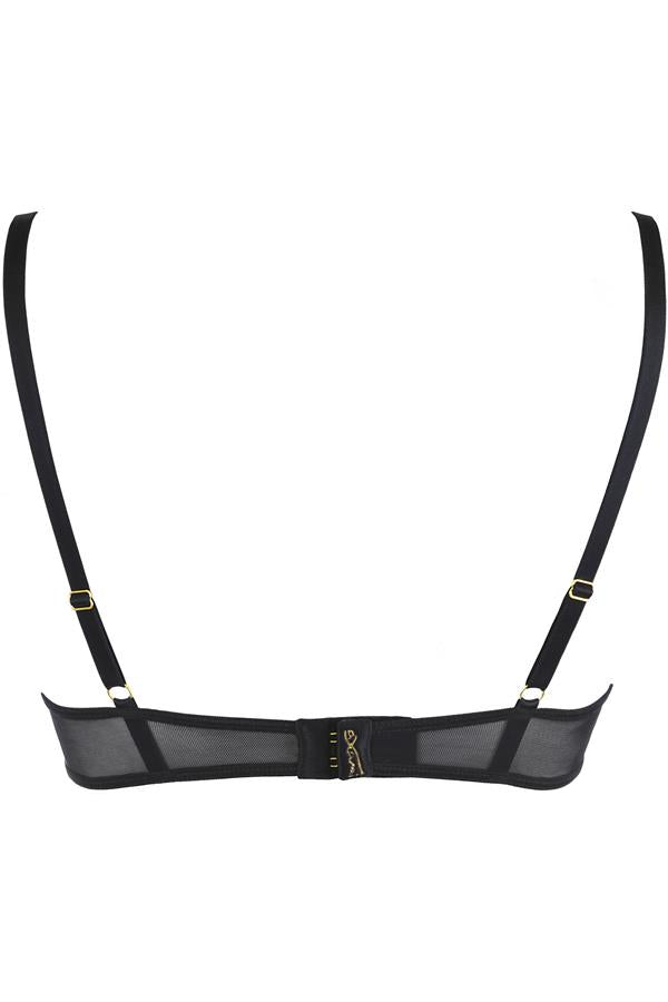 Gefertigt aus feiner Mikrofaser mit Leopardenprint und zartem schwarzem Tüll, verbindet dieser BH Komfort mit verführerischem Design. Die eingearbeiteten Bügel und das leichte Padding sorgen für optimalen Halt, während verstellbare, nicht abnehmbare Träger mit goldfarbenen Details einen Hauch von Eleganz verleihen. Der Rückenverschluss mit Doppelhaken rundet das edle Design ab.