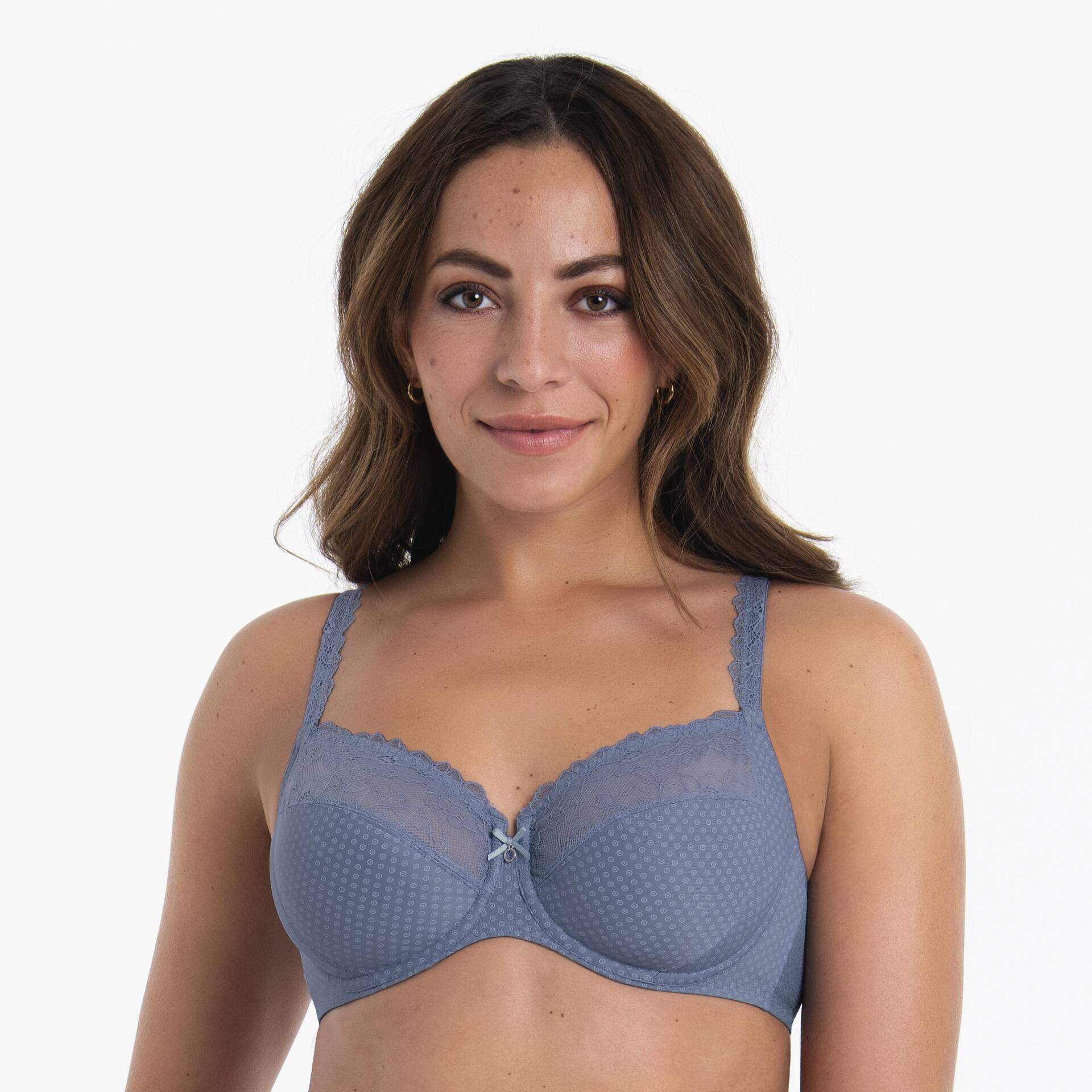 Dieser zauberhafte Bügel-BH vereint feminine Eleganz mit zuverlässigem Halt. Die dreigeteilten Cups formen die Brust sanft, während florale Spitze aus recyceltem Garn und ein charmantes Pünktchenprint dem Modell eine romantische Note verleihen. Feine Charmeuse schmiegt sich angenehm an die Haut, das zarte Dekolletéband betont das Dekolleté stilvoll. Ein edler Zierring mit Schleifchen rundet das Design ab und macht ELOISE zum echten Wohlfühl-Liebling für jeden Tag.