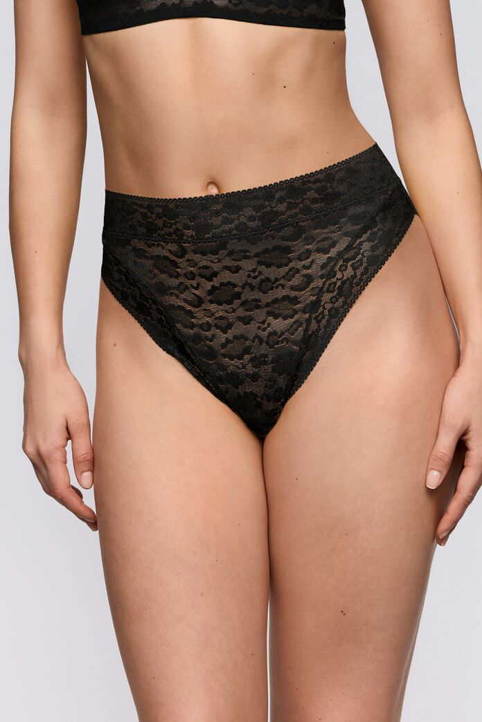 Der höhere Schnitt betont die Taille und sorgt zugleich für ein komfortables Tragegefühl. Das elastische Material passt sich sanft an den Körper an und macht diesen Slip zum stilvollen Begleiter für jeden Tag oder besondere Momente.