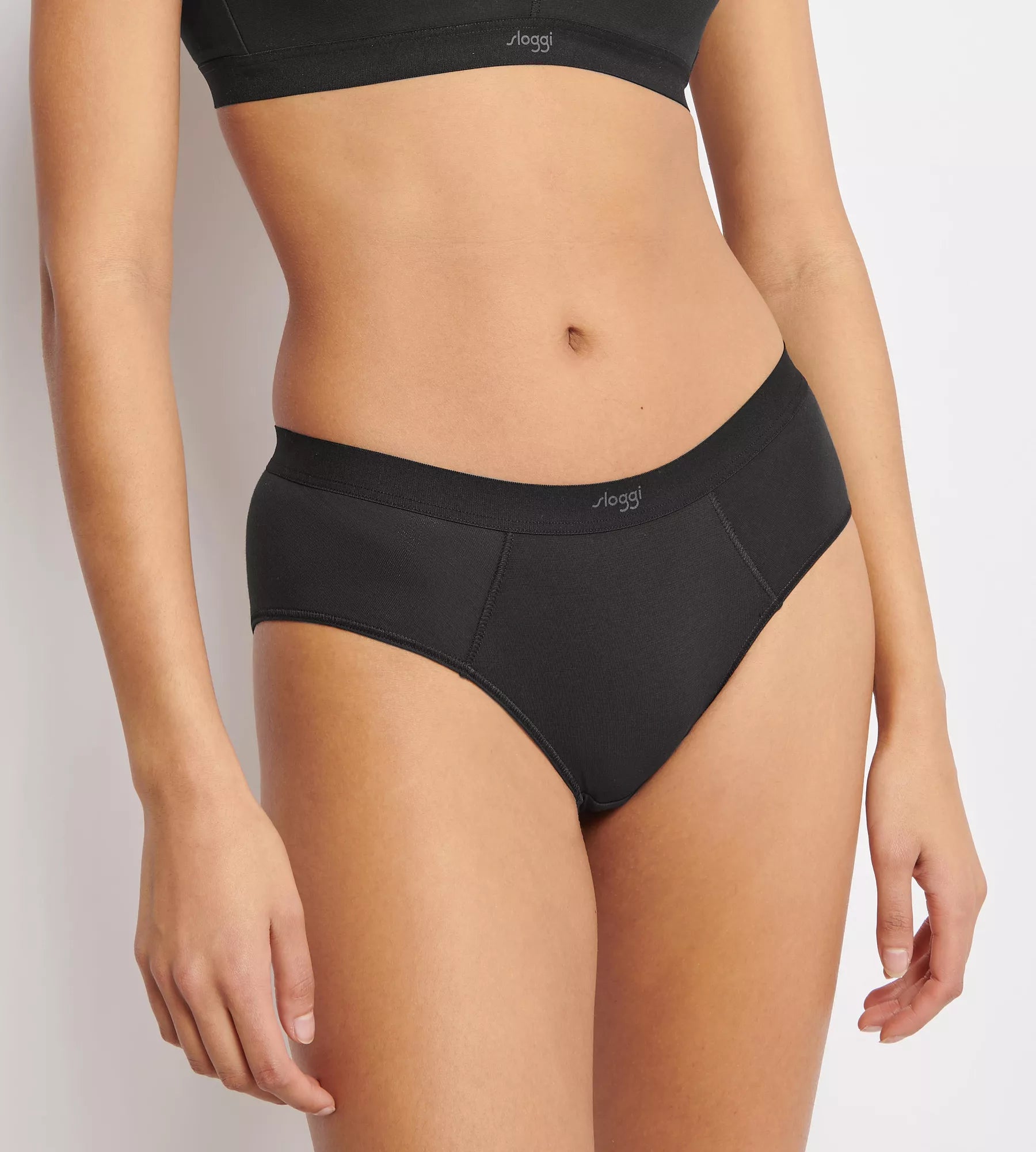 • 🤍 Glatter, elastischer Bund mit feinem Sloggi-Logo